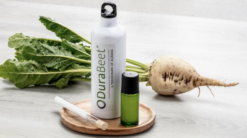 "Die positiven Eigenschaften gleich mehrerer AGRANA-Produkte auf körperliche Leistungsfähigkeit, Ausdauer und Immunabwehr haben die Produktentwickler in einer neuen Mischung für Sportgetränke kombiniert: zum einen rein natürlich hergestelltes, kristallines Betain aus der Zuckerrübe, das wichtige Stoffwechselfunktionen unterstützt und sich positiv auf den Wasserhaushalt der Zelle auswirkt. Das Produkt DuraBeet© enthält 99 Prozent Betain und eignet sich ideal für die Anwendung in Getränken, (Sport-) Riegel und Nahrungsergänzungsmitteln.
