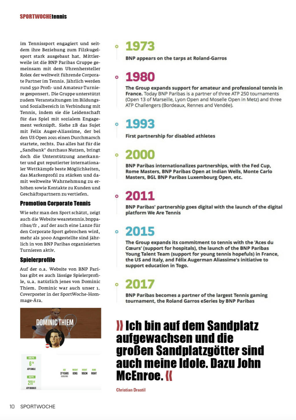 Auf der o.a. Website von BNP Paribas gibt es auch lässige Spielerprofile, u.a. natürlich jenes von Dominic Thiem. Dominic war auch unser 1. Coverposter in der SportWoche-Hommage-Ära.